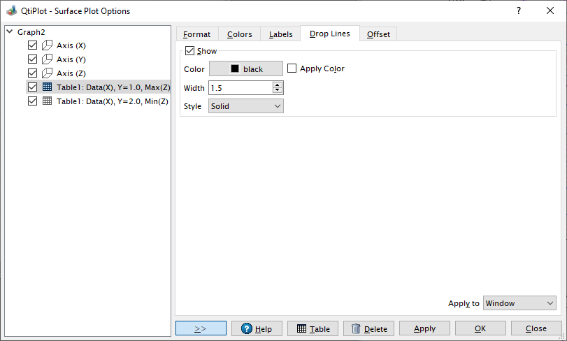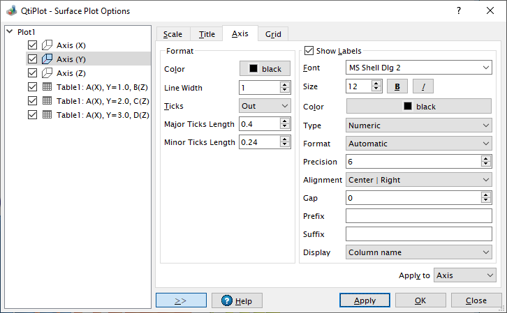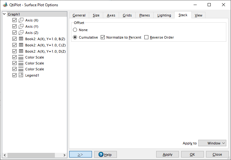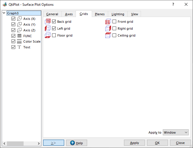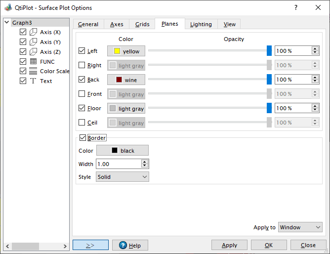 All these settings can be applied to the active window or to all 3D plot windows in the project, depending on the option you choose in the Apply to list box.