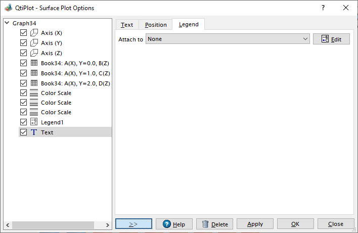Each text or color scale can be attached to a 3D legend object. This tab can be used in order to set the parent legend or to detach the text/color scale from a legend object, if the Attach to option is set to None.