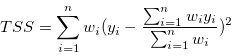In the case of weighted data fitting, the total sum of squares is calculated as:
