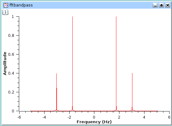 The power spectrum of this new signal shows that only frequencies in the pass band remain (2 and 3 Hz).