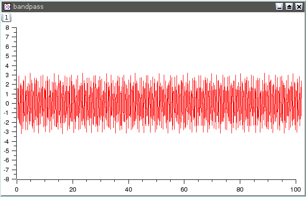 This filter cuts both low and high frequencies from a signal while leaving frequencies in the pass band. You just have to select the high and low cut-off frequencies of the filter. Let us assume that we want to keep the frequencies between 1.5 and 3.5 Hz, we will obtain: