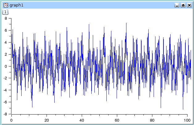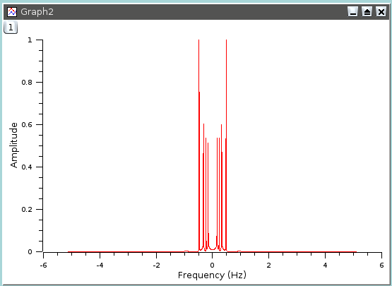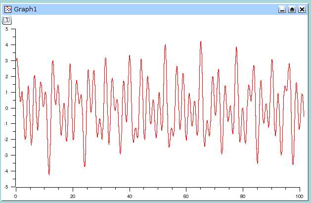 This signal has a power spectrum which contains both high and low frequencies. We can analyze this by doing a FFT on the data curve, this leads to the following figure: