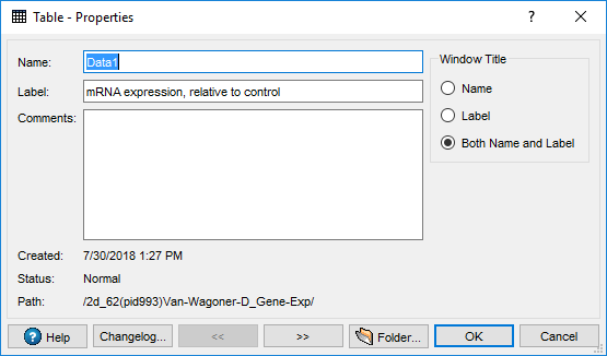 With this dialog it is possible to change the default Name and Label of a project window as well as its Window Title display policy: Name, Label or Both Name and Label. It also makes possible to set some Comments for the project window.